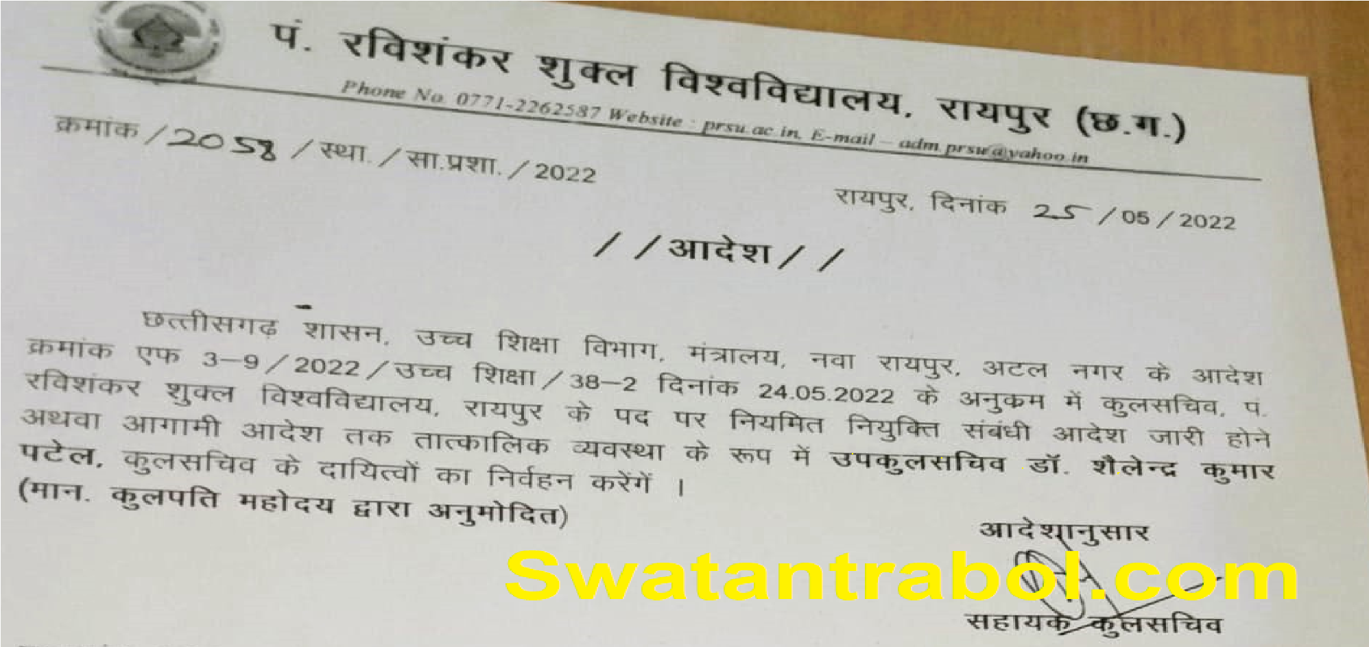 रविशंकर शुक्ल विश्वविद्यालय के प्रभारी कुलसचिव की पीएचडी, एमफिल की डिग्री फर्जी…!